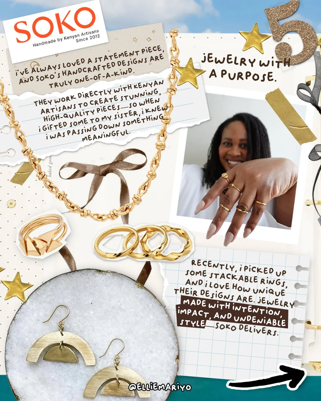 I’ve always loved a statement piece, and SOKO’s handcrafted designs are truly one-of-a-kind. They work directly with Kenyan artisans to create stunning, high-quality pieces—so when I gifted some to my sister, I knew I was passing down something meaningful. Recently, I picked up some stackable rings, and I love how unique their designs are. Jewelry made with intention, impact, and undeniable style—SOKO delivers.